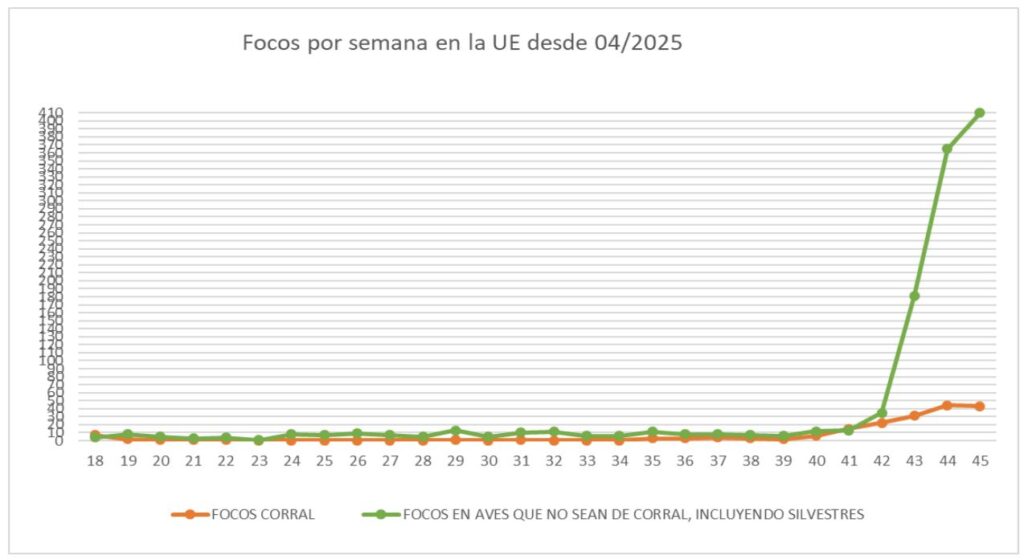 Desde el inicio de la temporada, el pasado 1 de julio de 2025, Europa ha registrado una intensa circulación viral. Las autoridades sanitarias han detectado un total de 209 focos en aves de corral y 50 en aves cautivas. Sin embargo, el dato más preocupante reside en la fauna salvaje, con 1.512 casos detectados en aves silvestres.