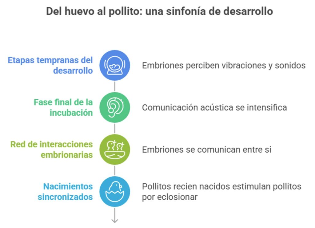 Numerosos estudios en laboratorios experimentales han demostrado que estos estímulos acústicos cumplen una función de sincronización. Los embriones que “escuchan” a otros iniciar el proceso de eclosión ajustan su propio ritmo de desarrollo, acercando el momento del nacimiento.