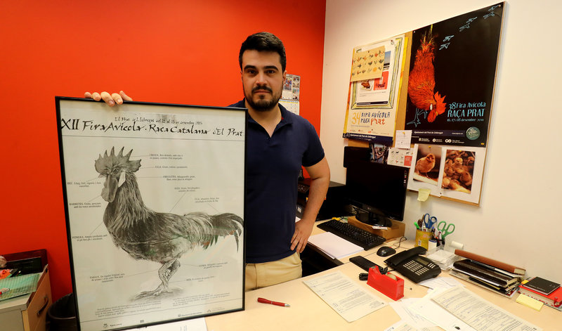 Gerard Llamas, de 27 años, es el nuevo presidente de la Asociación de Criadores de la Raza Prat, el pollo autóctono de El Prat de Llobregat, conocido también como “pota blava” ( o pata azul) por el característico color de las patas. Ha tomado el relevo de Valentina Guisado, que durante 30 años ha presidido esta entidad que se dedica a la promoción y cuidado de esta raza.