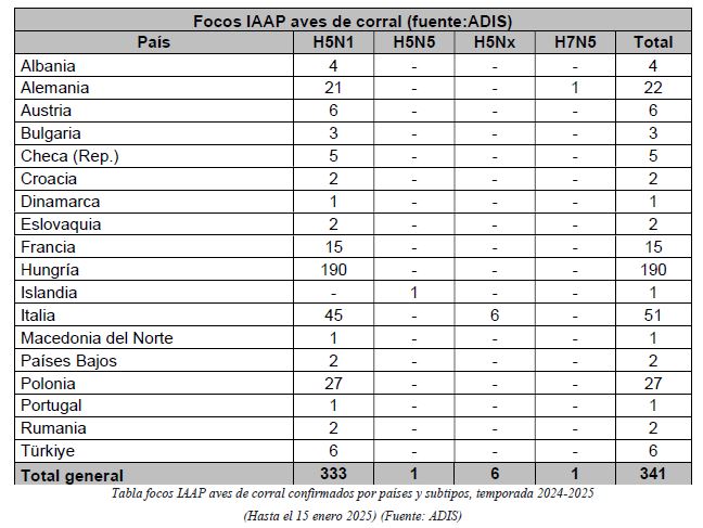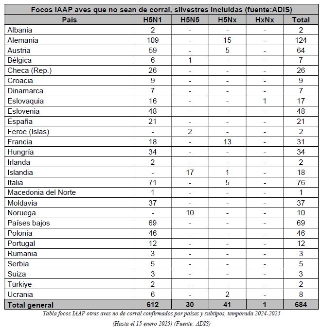 La influenza aviar de alta patogenicidad (IAAP) se encuentra en un punto crítico en Europa, con 341 brotes en aves de corral y 684 en aves silvestres desde julio de 2024 hasta el 15 enero 2025.
