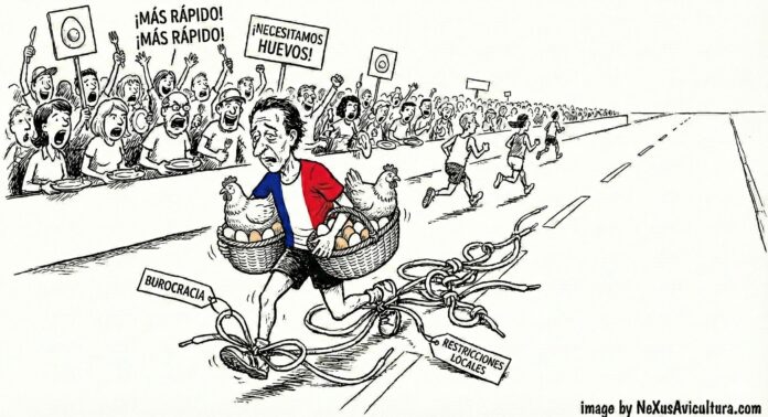 - 2.1 – Complejidad administrativa: La propia ministra de Agricultura, Annie Genevard, ha criticado que Francia ha complicado lo complicado y denunciado el lunes 12 enero 2026 en entrevista en la cadena BMF que instalar un gallinero en Francia es hoy tan complejo como construir una industria sensible. Las normativas son extremadamente restrictivas y el país tiende a la «sobre-transposición» de las leyes europeas, complicando la vida de los avicultores sin que la UE lo exija.