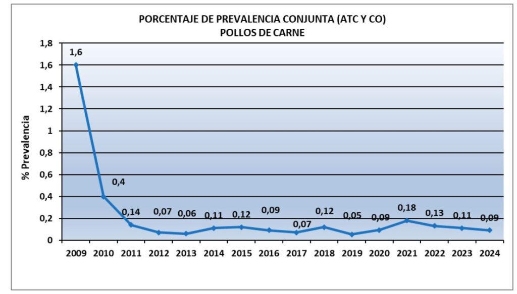 Resultado actual: gracias a los sucesivos programas nacionales, la prevalencia conjunta (autocontroles + control oficial) ha descendido de forma drástica. En 2024 se situó en el 0,09 %, muy por debajo del objetivo de la UE del 1 %. España cumple holgadamente el objetivo comunitario.
