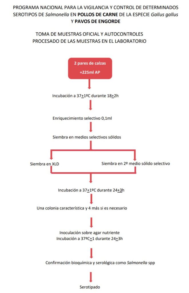 https://servicio.mapa.gob.es/). - Los laboratorios deben serotipar los aislamientos de Salmonella spp. para distinguir si se trata de los serotipos objeto de control u otros.