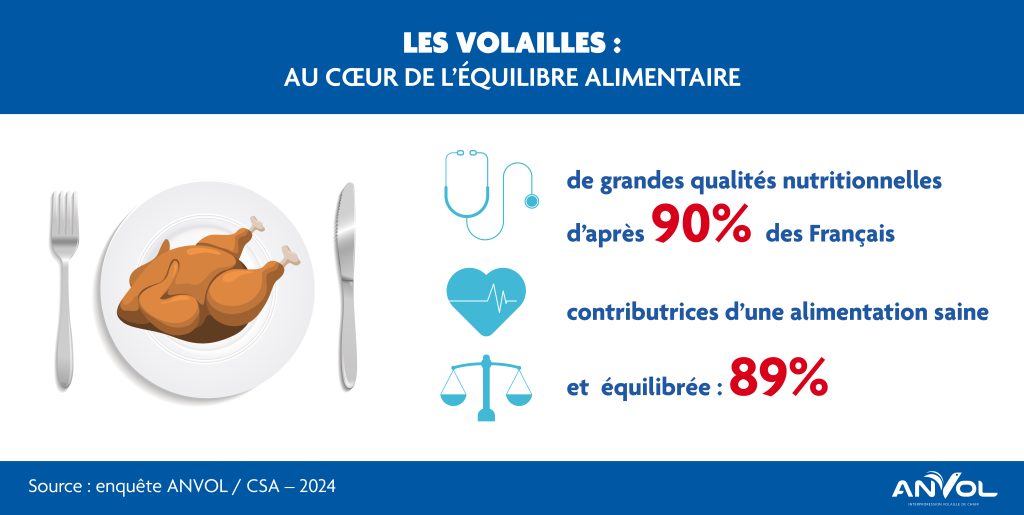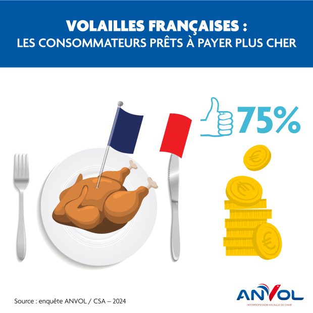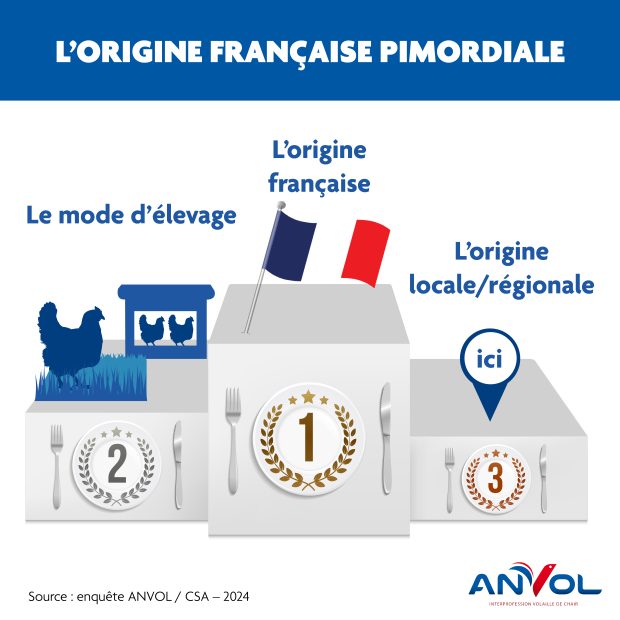 Una reciente encuesta encargada por Anvol (la Interprofesional de la Carne de Ave) confirma una tendencia clara: los franceses son grandes consumidores de carne de ave y, cada vez más, dan una importancia capital al origen francés de los productos que compran.