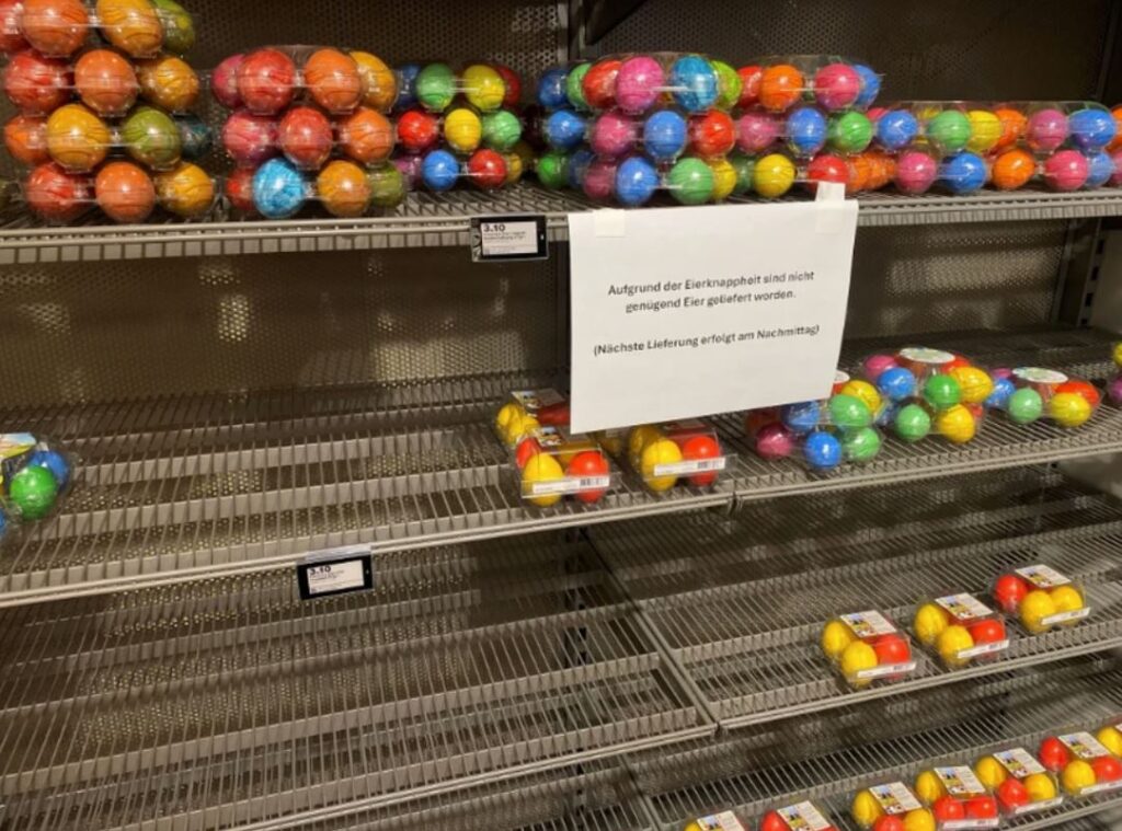 9 enero de 2026. El invierno suizo, habitualmente caracterizado por la precisión de sus horarios ferroviarios y la blancura de sus cumbres, ha amanecido con una anomalía que perturba la paz cantonal: el silencio en los estantes de huevos en los lineales de los supermercados. Si un consumidor suizo entraba estas Navidades pasadas o hoy en una filial de la cadena de supermercados Migros en Zúrich o en un Coop cerca del Lago de Ginebra, es muy probable que se encuentre con unos estantes vacios donde antes estaban los cartones de huevos con la cruz blanca sobre fondo rojo. Y si tiene suerte de encontrar mercancía, notará algo que a los suizos no les gusta: el sello de origen de esos huevos no lleva la cruz blanca sobre fondo rojo, sino que lleva el código de origen neerlandés , francés o o alemán.